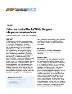White Sturgeon (Acipenser transmontanus), a species of concern in the San Francisco Estuary, is in relatively low abundance because of a variety of factors. The purpose of our study was to identify the estuarine habitat used by White Sturgeon to aid in the conservation and management of the species locally and across its range. We seasonally sampled sub-adult and adult White Sturgeon in the central estuary using setlines across a habitat gradient representative of three primary structural elements: shallow wetland channel (mean sample depth = 2 m), shallow open-water shoal (mean sample depth = 2 m), and deep open-water channel (mean sample depth = 7 m). We found that the shallow open-water shoal and deep open-water channel habitats were consistently occupied by White Sturgeon in spring, summer, and fall across highly variable water quality conditions, whereas the shallow wetland channel habitat was essentially unoccupied. We conclude that sub-adult and adult White Sturgeon inhabit estuaries in at least spring, summer, and fall and that small, shallow wetland channels are relatively unoccupied.