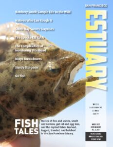 In this special issue on fish, Estuary shares both the heroics of saving a fish near extinction as well as the secrets of some sturdier, healthier natives. Stories detail how South Bay fish are faring now that so much fish-food-producing marsh habitat has been restored; reveal how shreds of rubber from our car tires are poisoning Pacific Coast coho; and tally steelhead in urban and rural watersheds. Estuary doesn't forget, either, to drill down, once again, into the perpetual failure of the best-laid plans and policies to actually protect our beloved salmon, especially in drought when there isn’t enough water to go round.