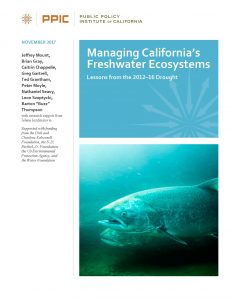 The Sacramento-San Joaquin Delta is the heart of California’s water delivery system, connecting the precipitation-rich regions of the north with the dry farmlands and demanding urban areas of the south and coast, including the Bay Area. Scarce water resources create conflicts between people and fishes; as demand by people for water grows, less water is available for the environment. This white paper explores the ways to keep the native fishes, and the functional ecosystems they require, from disappearing. Our analysis is fish-oriented because salmon, smelt, and other declining fishes are major drivers of decisions on where to focus aquatic restoration efforts.