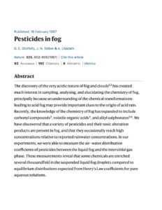 A total of 11 pesticide compounds were detected in the suspended sediments filtered from water samples (6 herbicides, 3 insecticides, 1 fungicide, and 1 breakdown product). The most frequently detected compounds were the insecticides permethrin (7 percent) and bifenthrin (5 percent) and the herbicide pendimethalin (5 percent). Pesticide concentrations in the suspended-sediment ranged from below the method detection limit to 265 nanograms per liter for the herbicide pendimethalin.