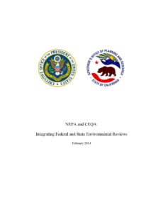 The purpose of this handbook is to provide practitioners with an overview of the NEPA and CEQA processes, and to provide practical suggestions on developing a single environmental review process that can meet the requirements of both statutes. This handbook contains three main sections. First is a “Question and Answer” section that addresses the key similarities and differences between NEPA and CEQA. This section compares each law’s requirements or common practices, and identifies possible strategies for meeting the requirements of both laws. These strategies are not meant to prescribe methods that agencies must use; rather, this handbook provides suggestions that will help agencies identify and think through potential issues. Indeed, developing a common understanding of the NEPA and CEQA review processes and their differences at the beginning of a joint review process may be among the most important ways to conduct an efficient and effective review process.
