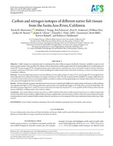 Carbon and nitrogen isotopes of different native fish tissues from the Santa Ana River, California