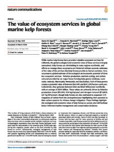 While marine kelp forests have provided valuable ecosystem services for millennia, the global ecological and economic value of those services is largely unresolved. Kelp