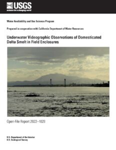 The second part of the study was completed in cooperation with the DWR. In October 2019, DWR deployed three enclosures in the Sacramento River near Rio Vista, California. To monitor survival rate of delta smelt, DWR permitted us to deploy cameras in one enclosure to document the frequency and duration of alarm behaviors exhibited by delta smelt and the frequency, duration, and intensity of three types of disturbances: (1) noise generated from passing boats, (2) noise generated from the enclosure moving in response to wave energy, and (3) vertical movements of the enclosure generated from wave energy. Alarm behaviors averaged about 2 minutes in duration and occurred most frequently during the evening compared to midday or morning. Each disturbance variable exhibited substantial variability in duration and intensity and occurred least frequently during the morning and evening compared to midday. Alarm behaviors appeared to be most associated with high intensity enclosure noises and vertical movements; however, limited replicate samples prohibited developing a statistical relation. Alarm behaviors did not directly contribute to injury or mortality of individual delta smelt; however, indirect or sublethal effects of alarm behaviors were not examined.